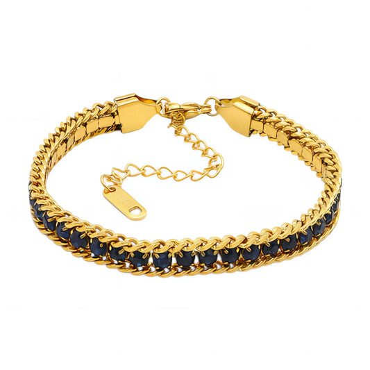 Ατσάλινο βραχιόλι ριβιέρα με σκούρες μπλε πέτρες (B3492)