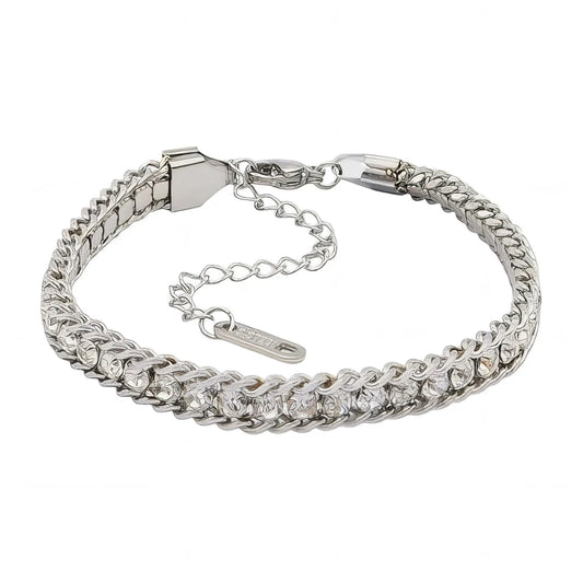 Ατσάλινο βραχιόλι ριβιέρα με λευκές πέτρες (B3493)