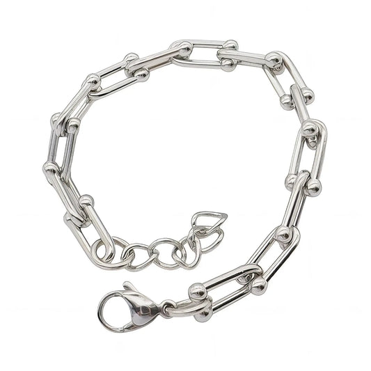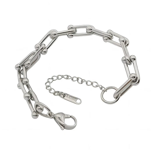 Ατσάλινο βραχιόλι αλυσίδα με κρίκους & μπίλιες (B3494)