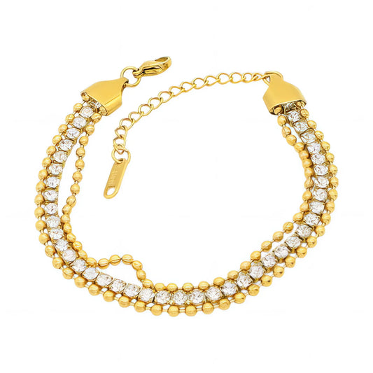 Ατσάλινο διπλό βραχιόλι με λευκά ζιργκόν – Χρυσό (B3498)