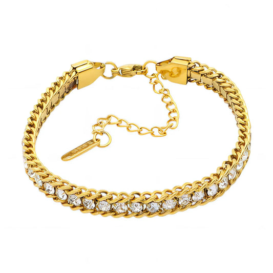 Ατσάλινο βραχιόλι με αλυσίδα & λευκά ζιργκόν – Χρυσό (B3499)