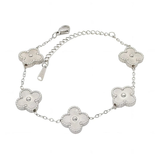 Ατσάλινο βραχιόλι με μοτίφ τετράφυλλο – Ασημί (B3502)