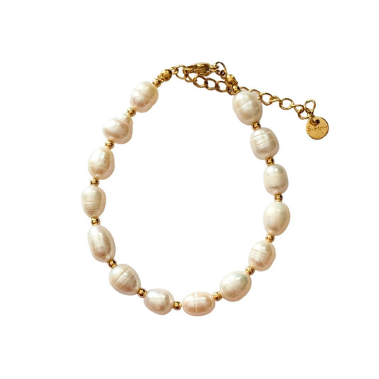Βραχιόλι ατσάλινο με καλλιεργημένα μαργαριτάρια επιχρυσωμένο 18k (B1403)