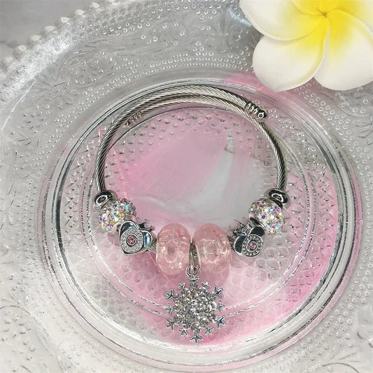 Βραχιόλι ατσάλινο χειροπέδα ροζ με τεχνητά διαμάντια (B1304)