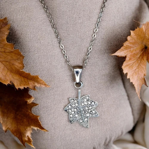 Ατσάλινο κολιέ με φύλλο χρώμα ασημί (N3028)