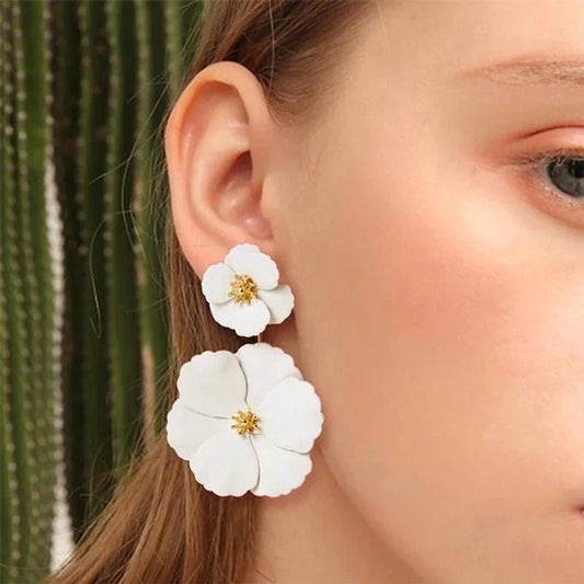 Κρεμαστά σκουλαρίκια λουλούδι χρώμα άσπρο (E1375)