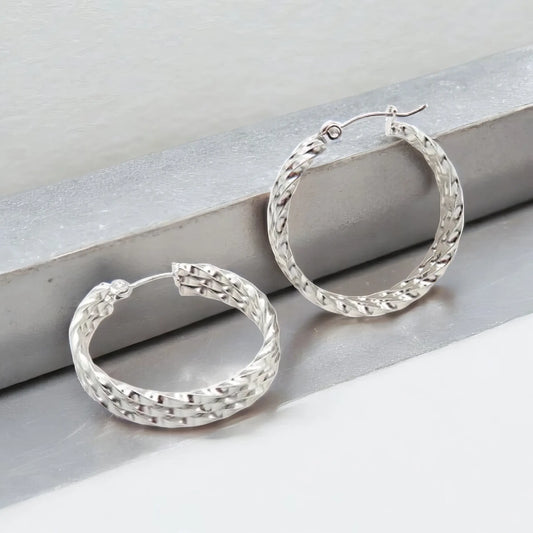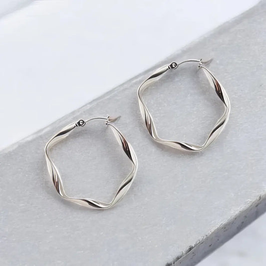 Ατσάλινα Σκουλαρίκια με Στριφτό Σχέδιο 3.1cm (E3141)