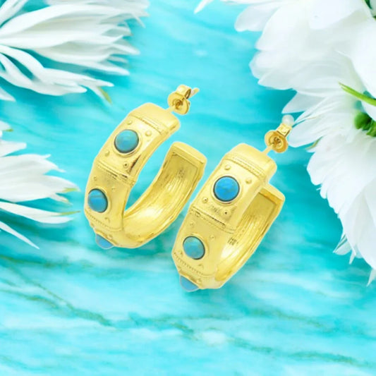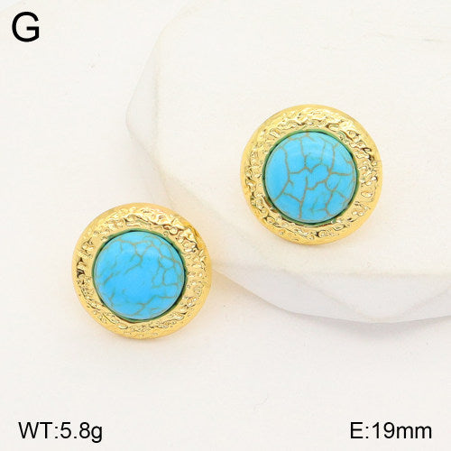 Επιχρυσωμένα Ατσάλινα Καρφωτά Σκουλαρίκια με Τυρκουάζ (E3226)