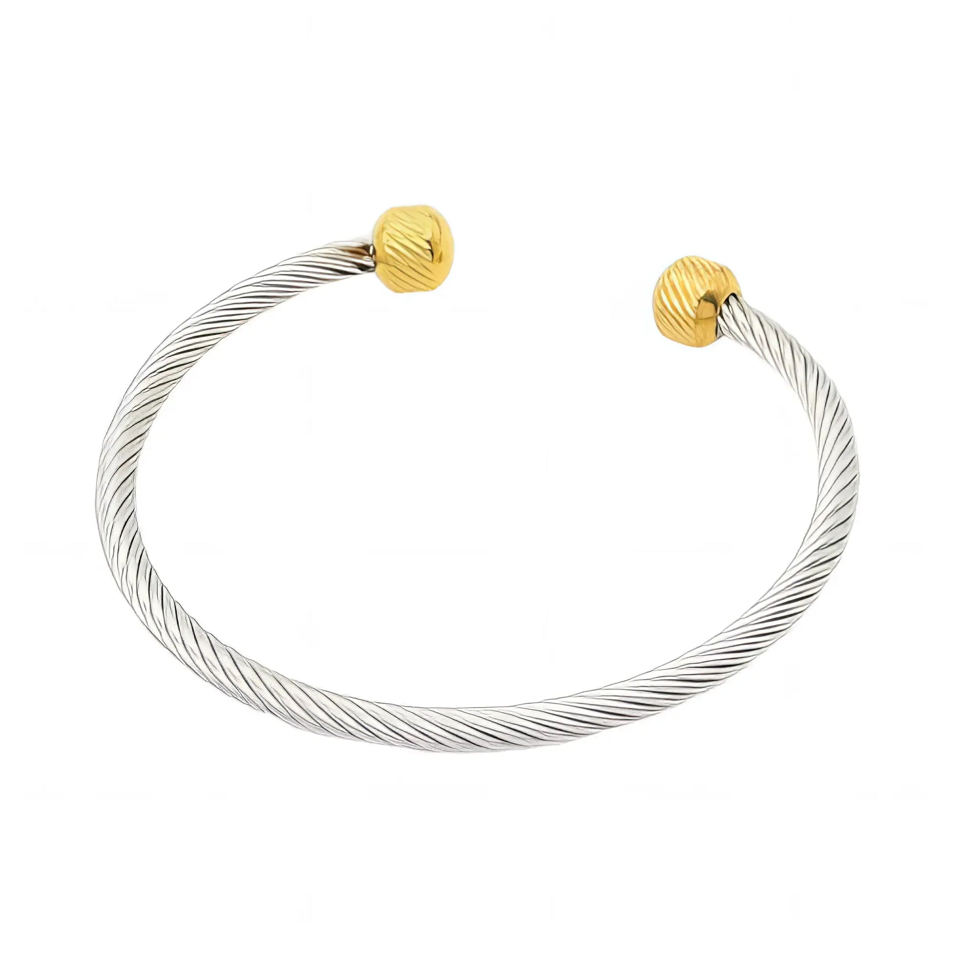 Στυλάτο και διακριτικό βραχιόλι με διχρωμία ασημί-χρυσό, ευκολοφόρετο σε κάθε περίσταση.