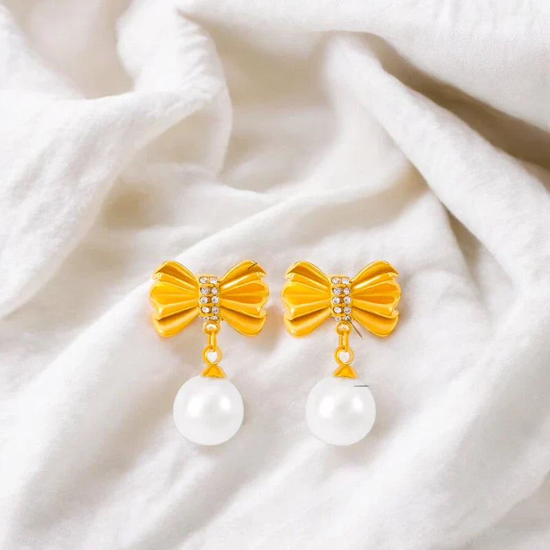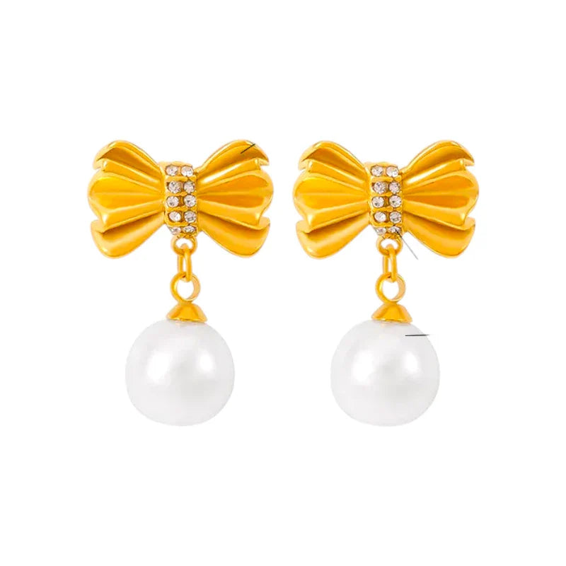 Αυτά τα κομψά κρεμαστά σκουλαρίκια διαθέτουν ένα διακριτικό σχέδιο με φιόγκο από ατσάλι και μια εντυπωσιακή κρεμαστή πέρλα. Το σχέδιο ολοκληρώνεται με λαμπερά ζιργκόν που προσθέτουν επιπλέον λάμψη. Είναι ιδανικά για επίσημες περιστάσεις, όπως γάμους ή βραδινές εξόδους, όπου θέλετε να προσθέσετε μια ρομαντική πινελιά στην εμφάνισή σας.