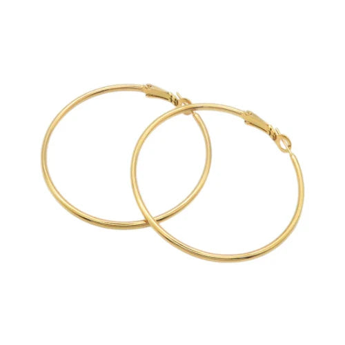 Κλασικά και διαχρονικά σκουλαρίκια κρίκοι από ανοξείδωτο ατσάλι σε κομψό χρυσό χρώμα. Το λεπτό πάχος τους προσφέρει μία minimal αλλά λαμπερή εμφάνιση που ταιριάζει σε κάθε στιλ, από casual έως πιο επίσημο.