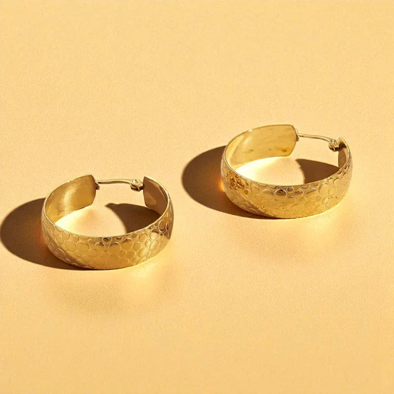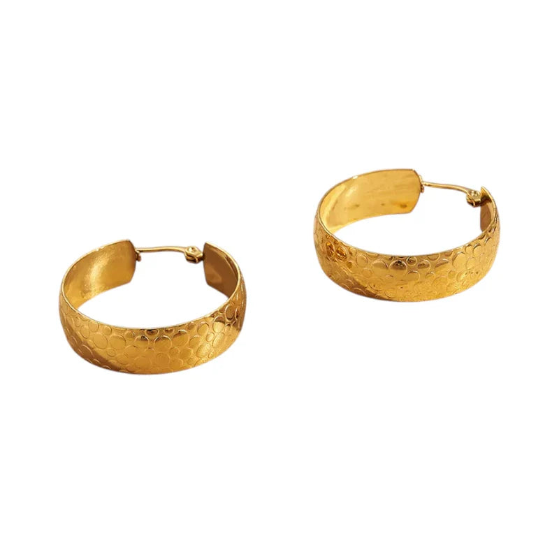 Ατσάλινα Σκουλαρίκια Κρίκοι – Χρυσό Ανάγλυφο Σχέδιο