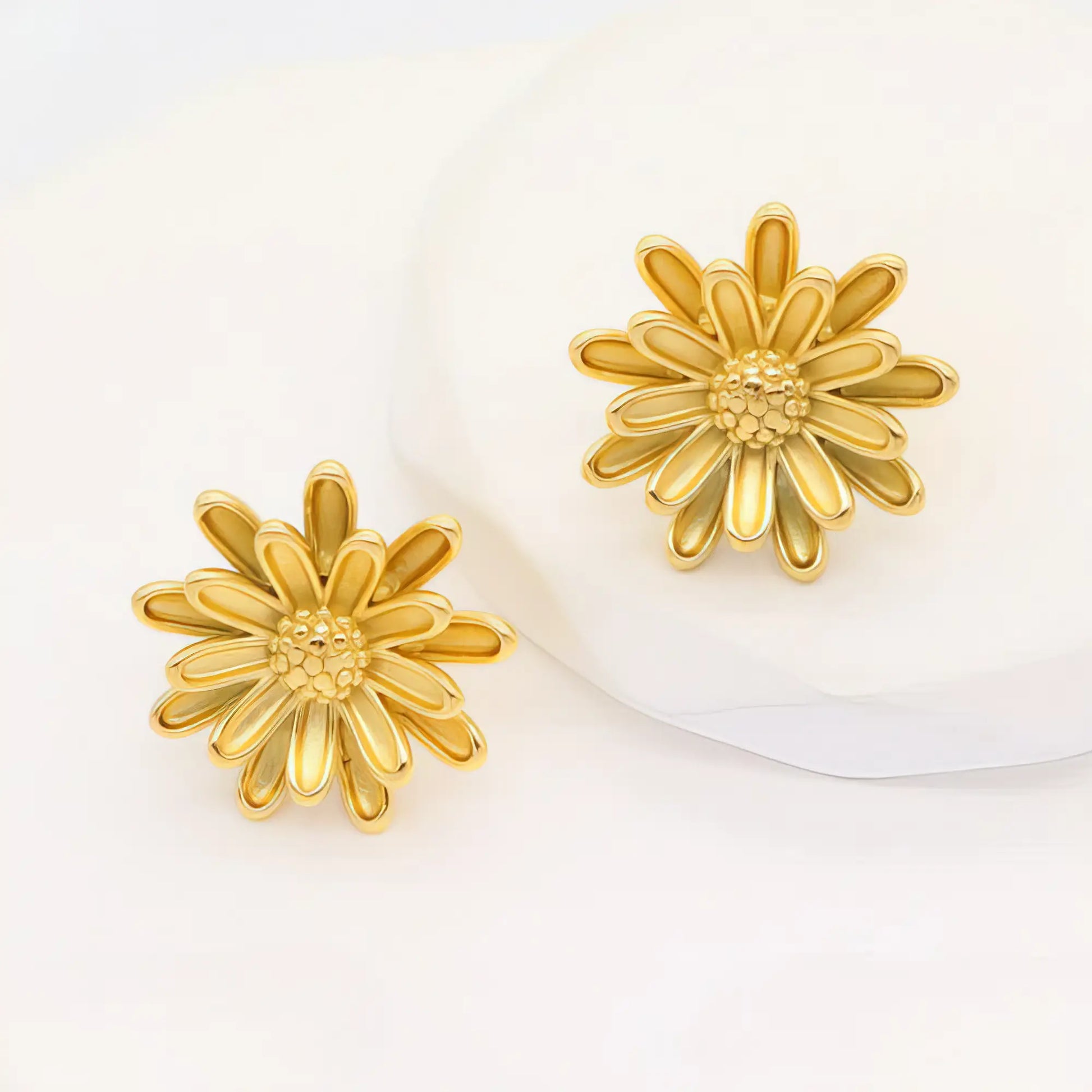 Ατσάλινα σκουλαρίκια μαργαρίτες σε χρυσό – 10.6g | 24mm