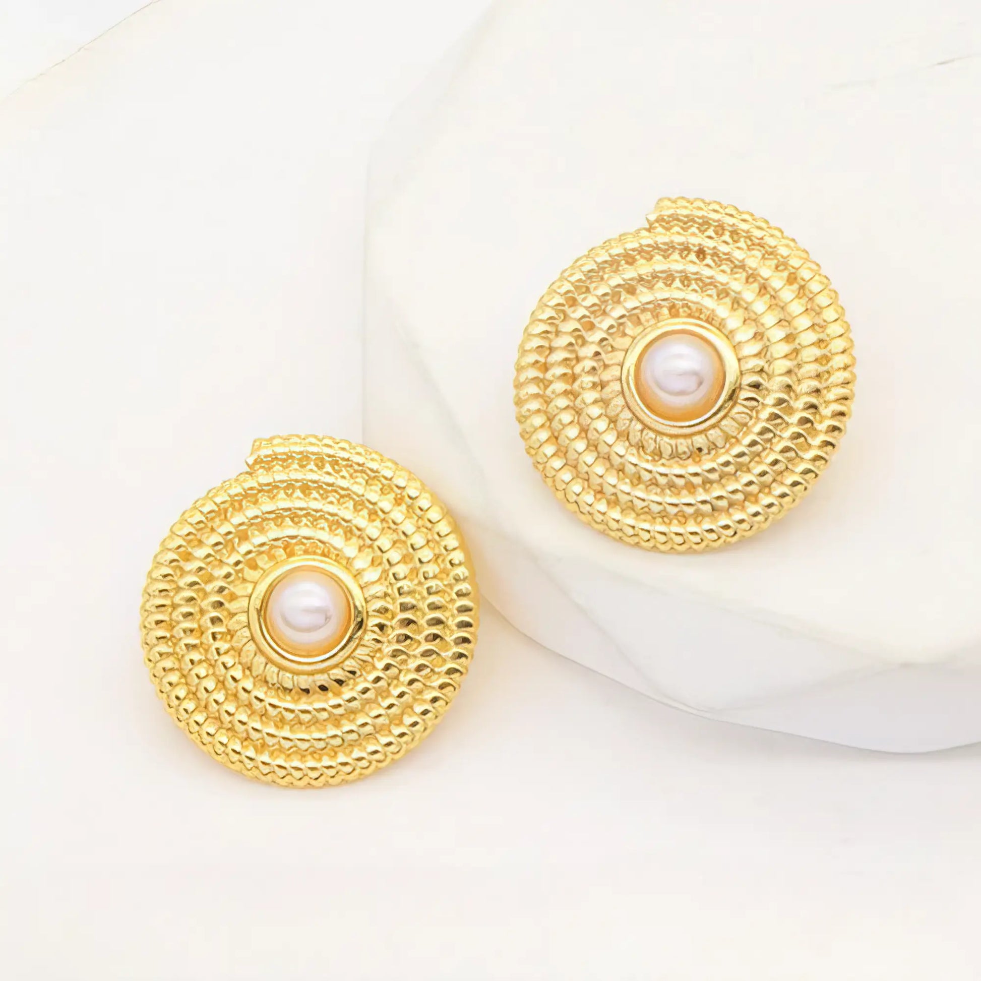 Μικρά και κομψά, αυτά τα χρυσά σκουλαρίκια με μαργαριτάρι είναι η ιδανική επιλογή για διακριτική κομψότητα.