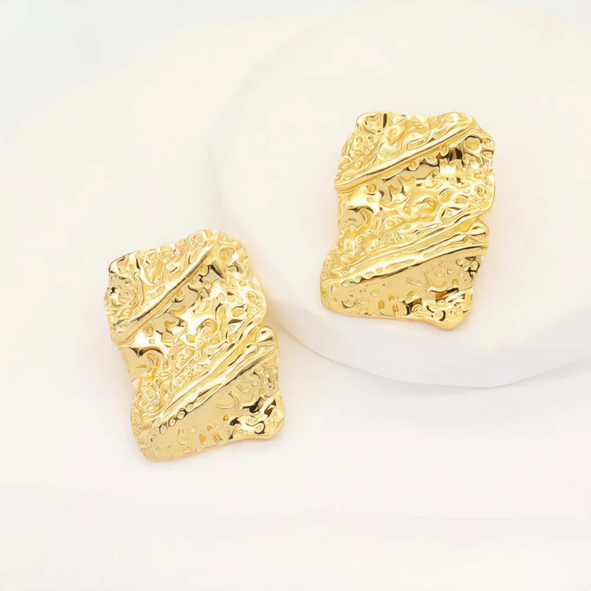 Ατσάλινα σκουλαρίκια σε αφηρημένο ανάγλυφο σχέδιο – 11.5g | 29x22mm