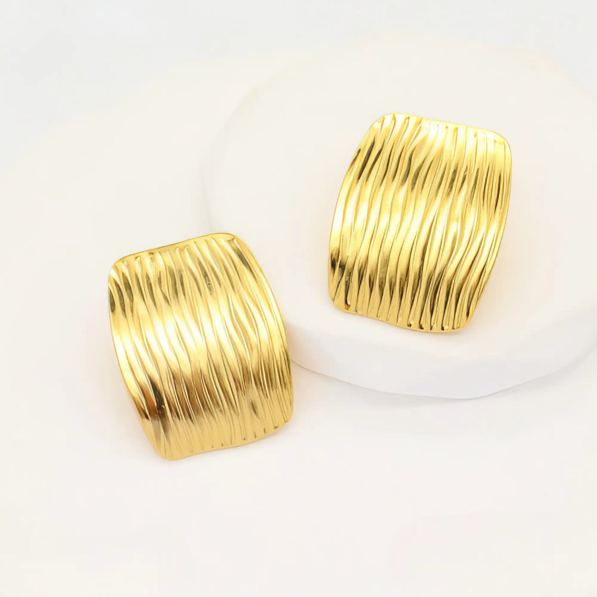 Κομψά και δυναμικά, αυτά τα ατσάλινα σκουλαρίκια σε τετράγωνο σχήμα με κυματιστές γραμμές χαρίζουν ένταση σε κάθε εμφάνιση.
