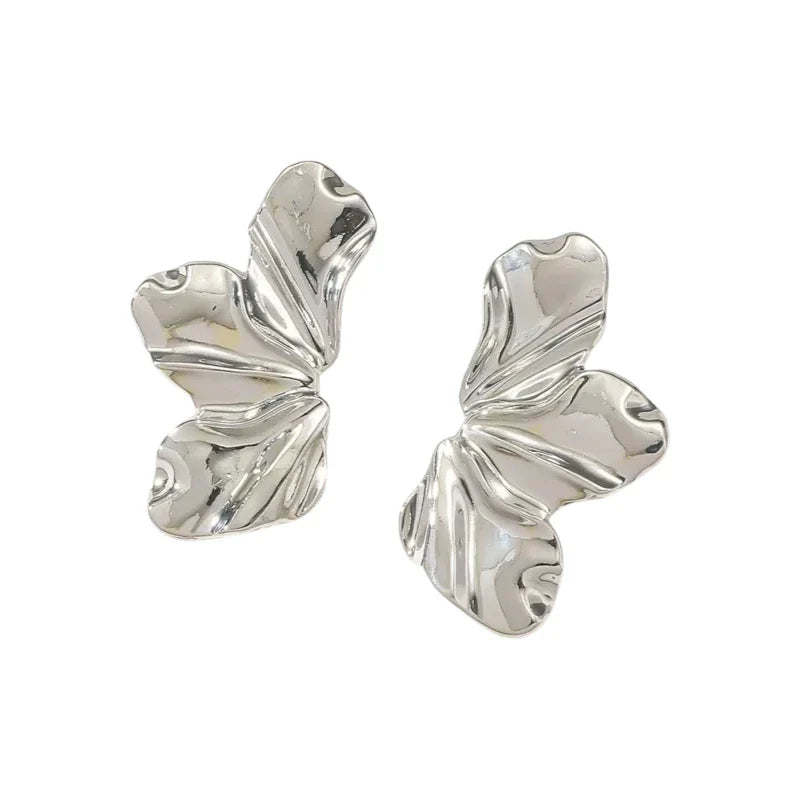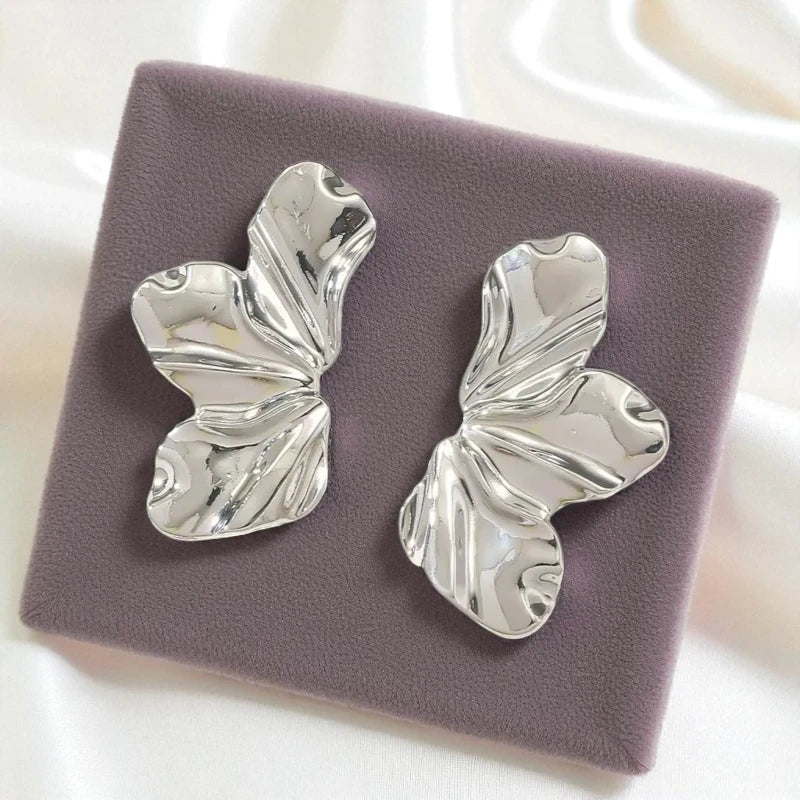 Εντυπωσιακά σκουλαρίκια από ανοξείδωτο ατσάλι σε σχήμα πεταλούδας με γλυπτό, καλλιτεχνικό σχεδιασμό και λαμπερό ασημί φινίρισμα. Μια τολμηρή προσθήκη που αναδεικνύει κάθε εμφάνιση με μοναδικότητα και χαρακτήρα.