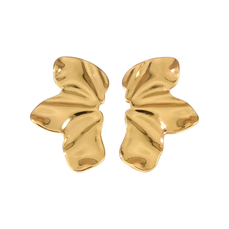 Εντυπωσιακά σκουλαρίκια από ανοξείδωτο ατσάλι σε σχήμα αφηρημένης πεταλούδας, με γυαλιστερό φινίρισμα που τραβάει τα βλέμματα. Μια statement επιλογή που συνδυάζει τέχνη και κομψότητα.