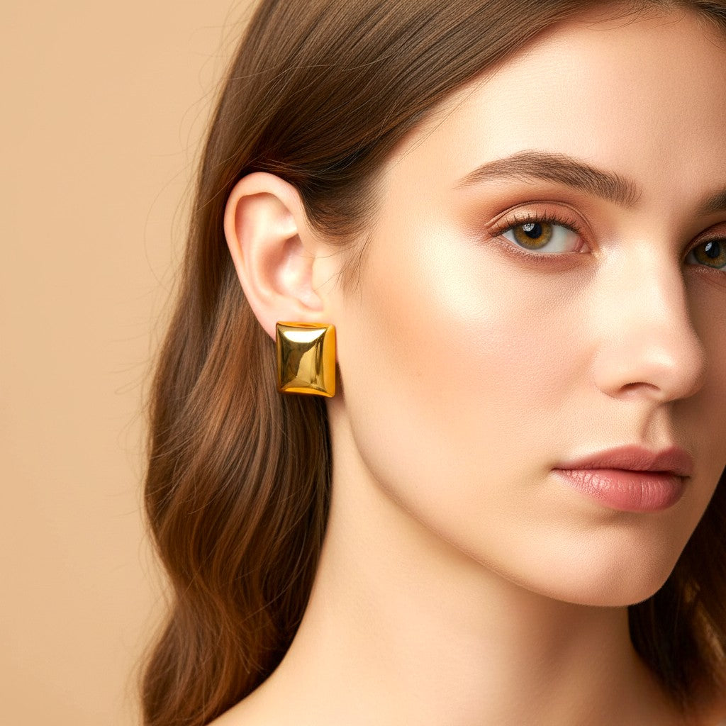 Εντυπωσιακά και κομψά, αυτά τα χρυσά σκουλαρίκια ξεχωρίζουν για τον minimal αλλά δυναμικό τους χαρακτήρα. Το γεωμετρικό τους σχήμα με το καθρέφτη φινίρισμα προσδίδει μια αίσθηση σύγχρονης πολυτέλειας που αναδεικνύει κάθε εμφάνιση. Ιδανικά για βραδινές εξόδους ή formal περιστάσεις, ταιριάζουν υπέροχα με μονόχρωμα σύνολα και sleek μαλλιά. Συνδύασέ τα με statement δαχτυλίδι ή βραχιόλι σε ίδιο φινίρισμα για bold αποτέλεσμα.
