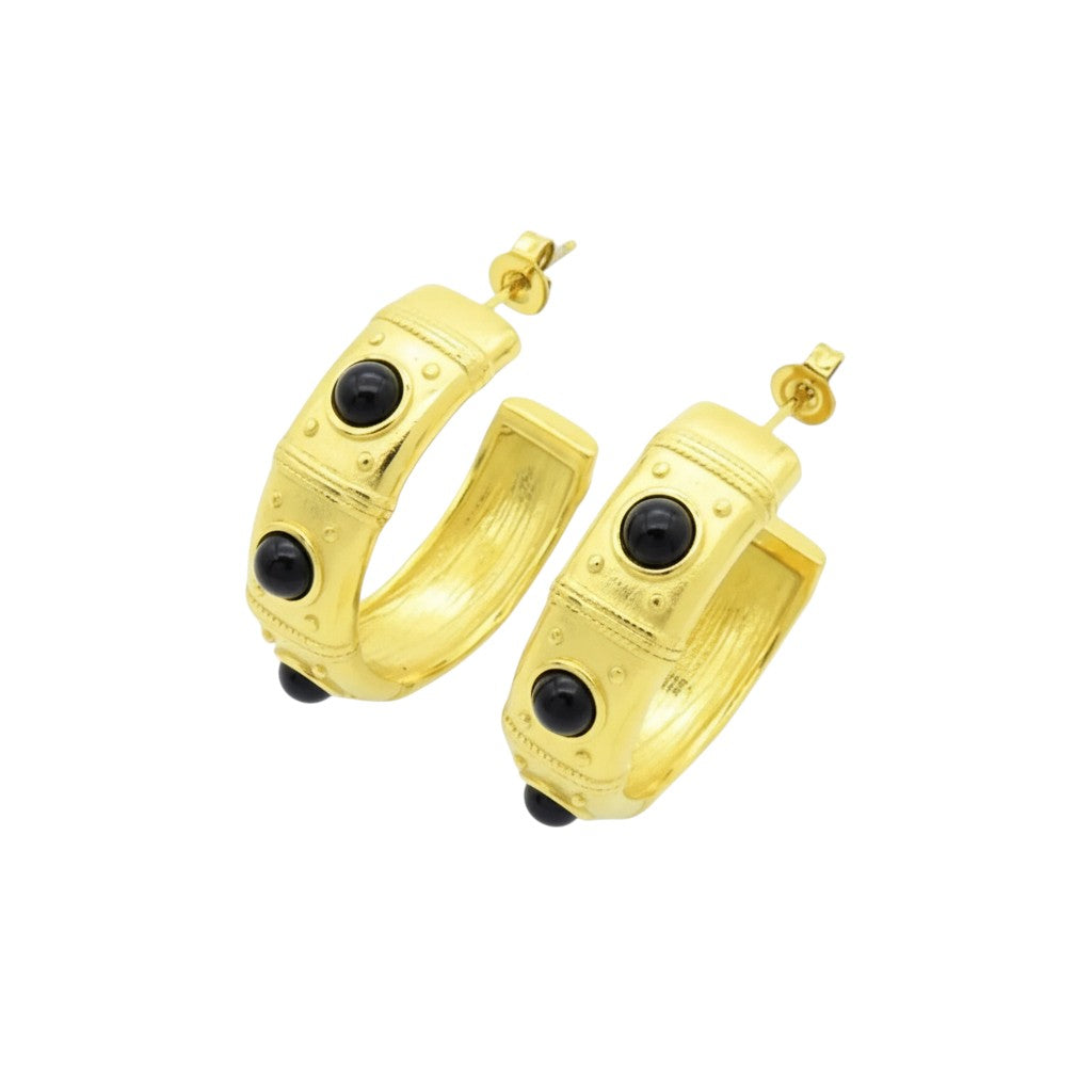 ✨ Ατσάλινα Σκουλαρίκια Κρίκοι με Μαύρες Πέτρες – 3.3cm