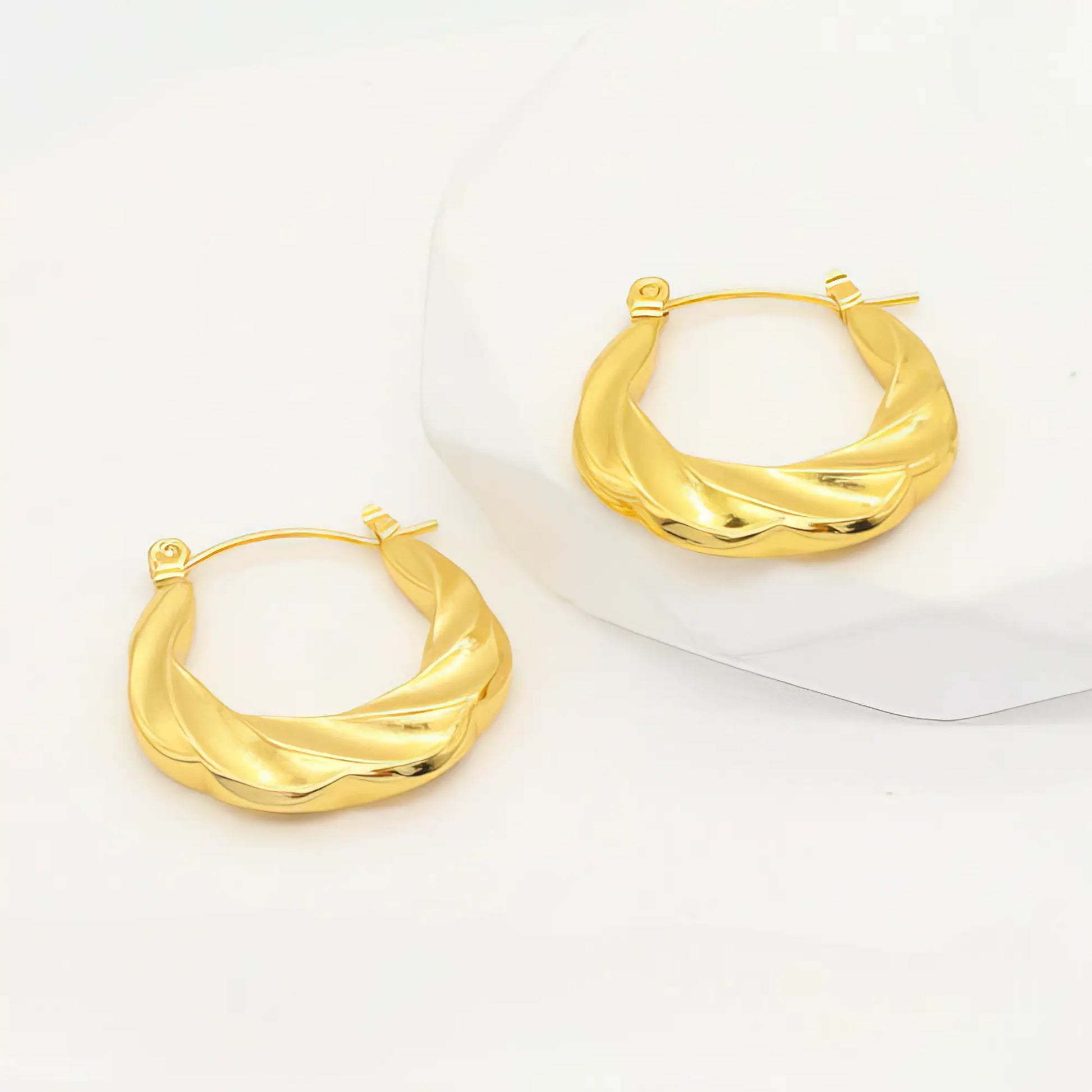 Κρίκοι με ιδιαίτερο πλεγμένο σχέδιο που δίνει ανάγλυφη υφή και extra λάμψη. Μια μοντέρνα εκδοχή του κλασικού κρίκου.