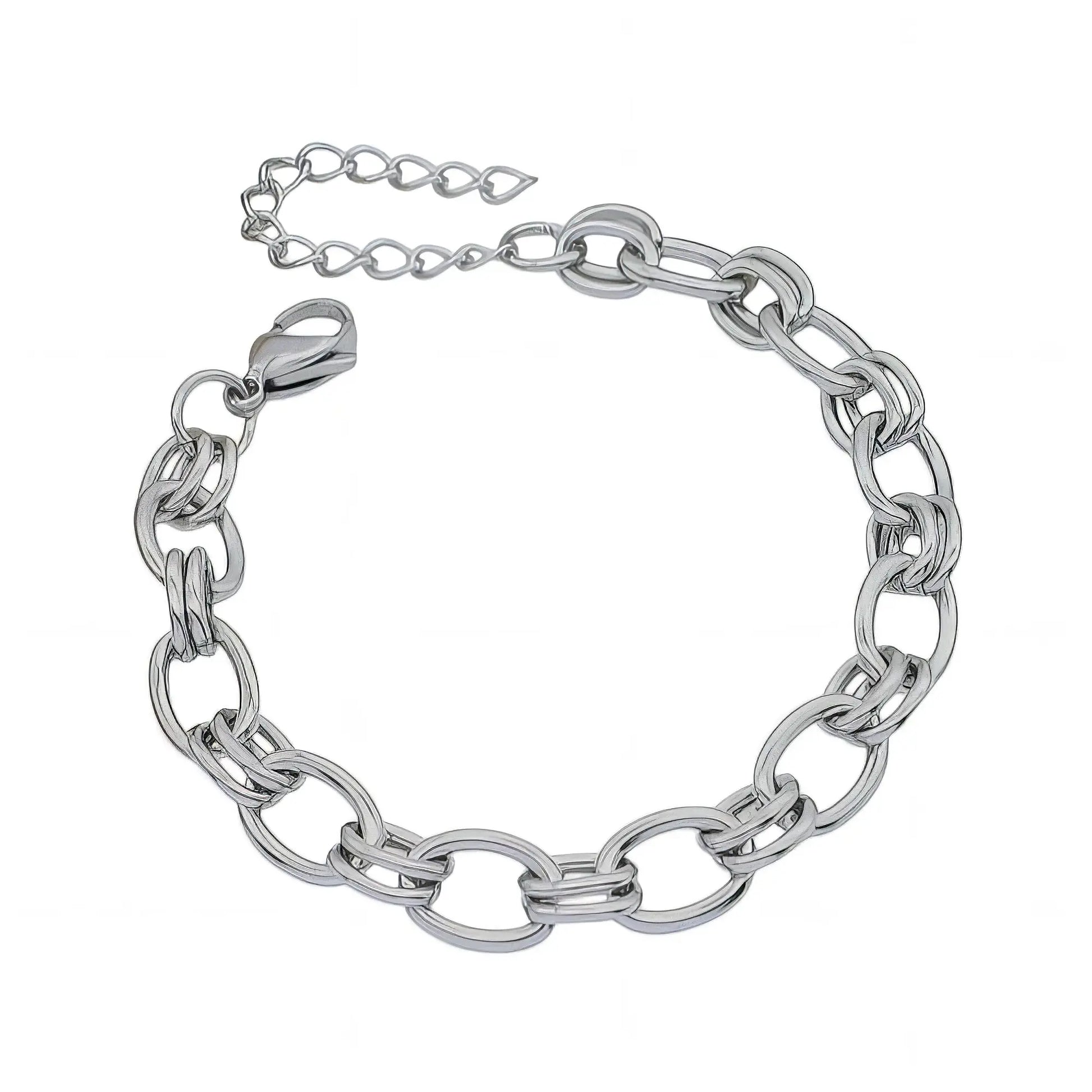 Ατσάλινο Ασημί Βραχιόλι με Κρίκους – 9mm