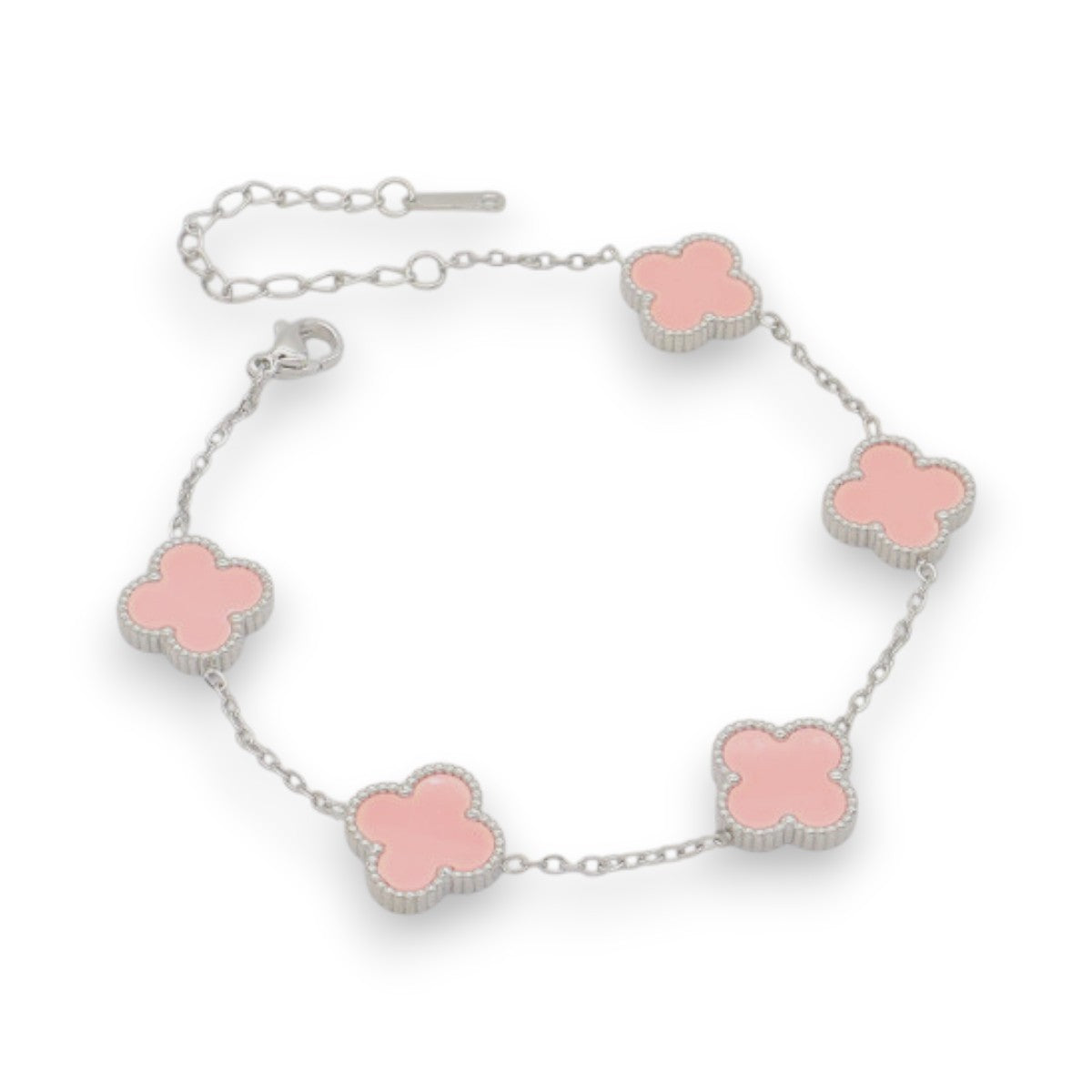 Ατσάλινο Ασημί Βραχιόλι με Ροζ Τετράφυλλα (B3508)
