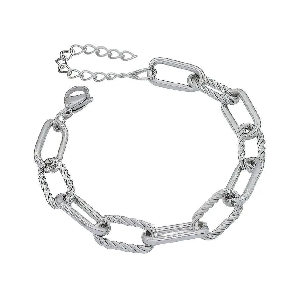 Ατσάλινο Ασημί Βραχιόλι με Συνδυασμό Λείων και Στριφτών Κρίκων – 9mm (B3479)