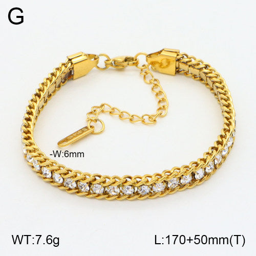 Ατσάλινο βραχιόλι με αλυσίδα & λευκά ζιργκόν – Χρυσό (B3499)
