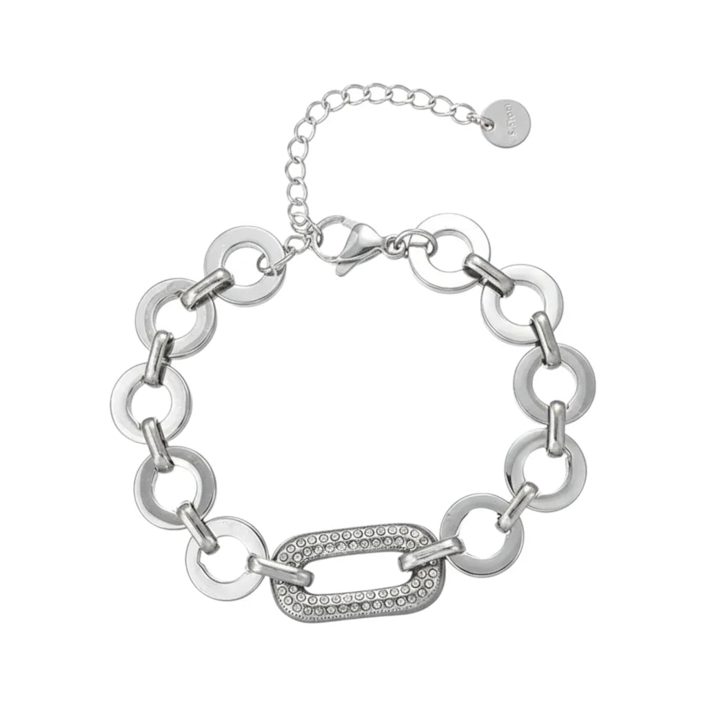 ✨ Ατσάλινο Βραχιόλι με Ασημί Κρίκους & Κεντρικό Στοιχείο με Ζιργκόν