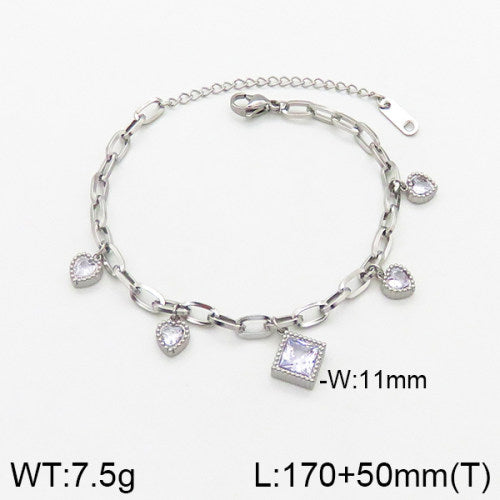 Ατσάλινο Βραχιόλι με Καρδιές και Τετράγωνη Διαφανής Πέτρα (B3380)