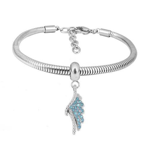 Ατσάλινο Βραχιόλι με Μενταγιόν Φτερό και Γαλάζιες Πέτρες (B3470)