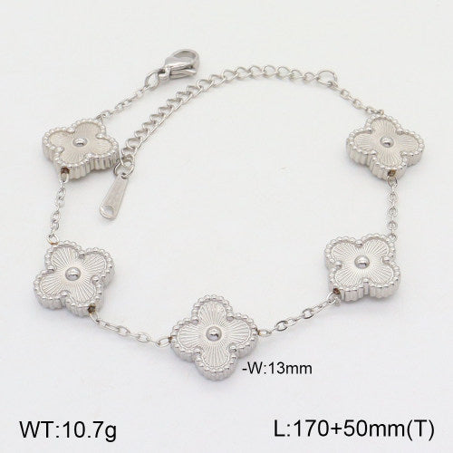 Ατσάλινο βραχιόλι με μοτίφ τετράφυλλο – Ασημί (B3502)