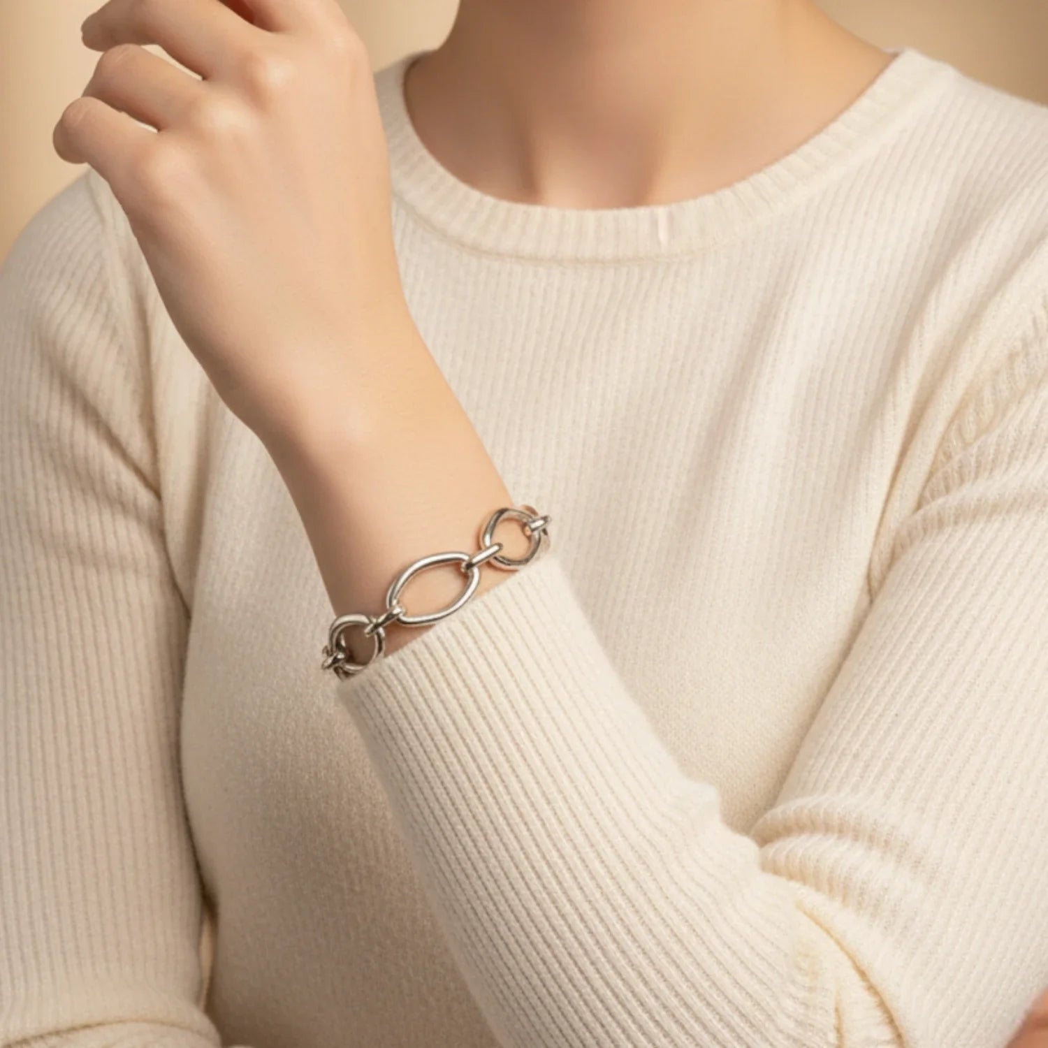 💎 Ατσάλινο Βραχιόλι με Οβάλ Κρίκους – Ασημί