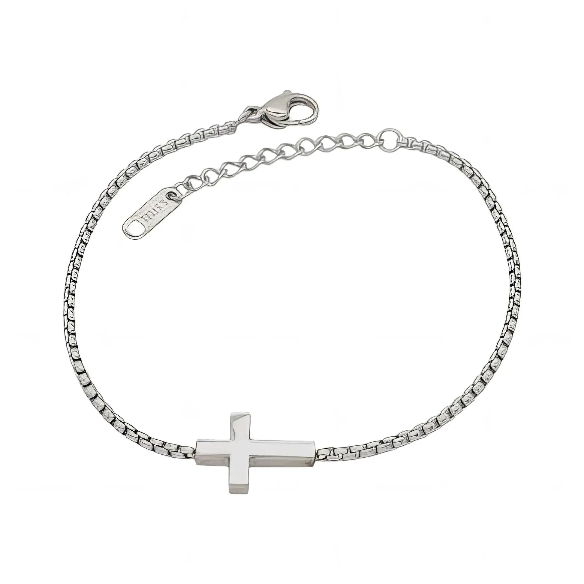 Ατσάλινο Βραχιόλι με Σταυρό – Ασημί Minimal Κόσμημα