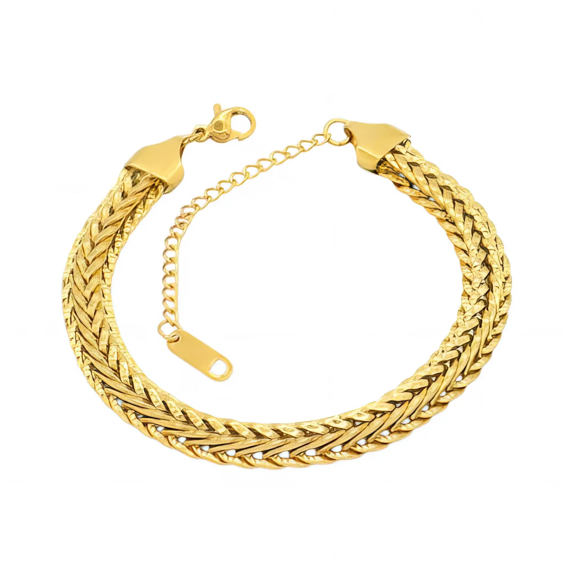 Βραχιόλι με σχέδιο πλεξούδα σε χρυσό χρώμα. Κομψό, ανθεκτικό και διαχρονικό – κατάλληλο για γυναίκες που αγαπούν την απλότητα με στυλ.