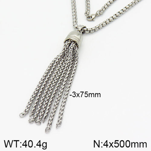 Ατσάλινο κολιέ μακρύ 50cm με φούντα χρώμα ασημί (N3133)