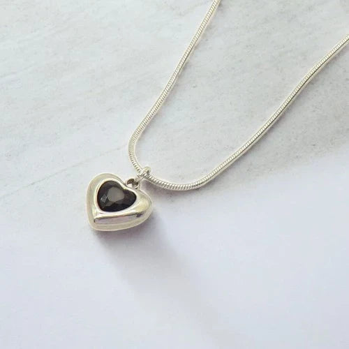 Ατσάλινο κολιέ με μαύρη καρδιά