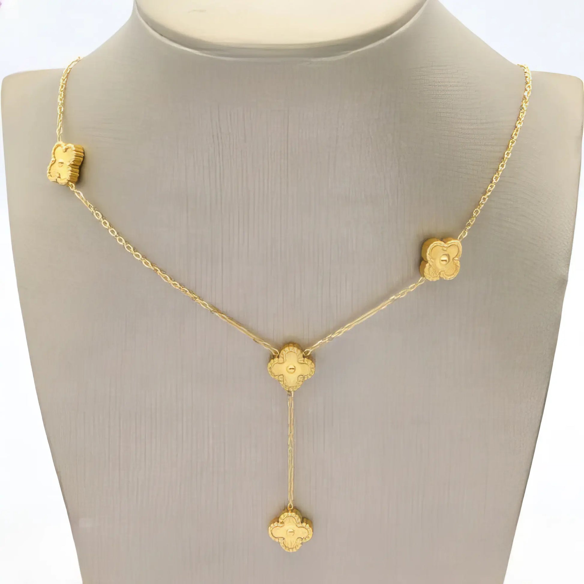 Ατσάλινο Κολιέ με Τετράφυλλα Μοτίφ – Επιχρυσωμένο