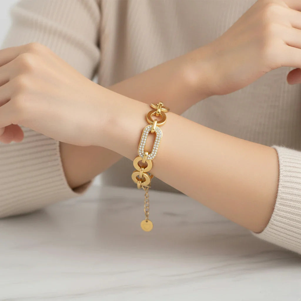 Ατσάλινο Χρυσό Βραχιόλι με Χοντρούς Κρίκους & Κεντρικό Στοιχείο με Ζιργκόν (B1737)