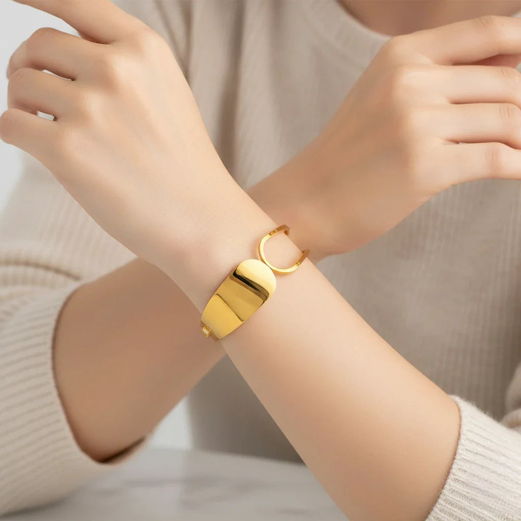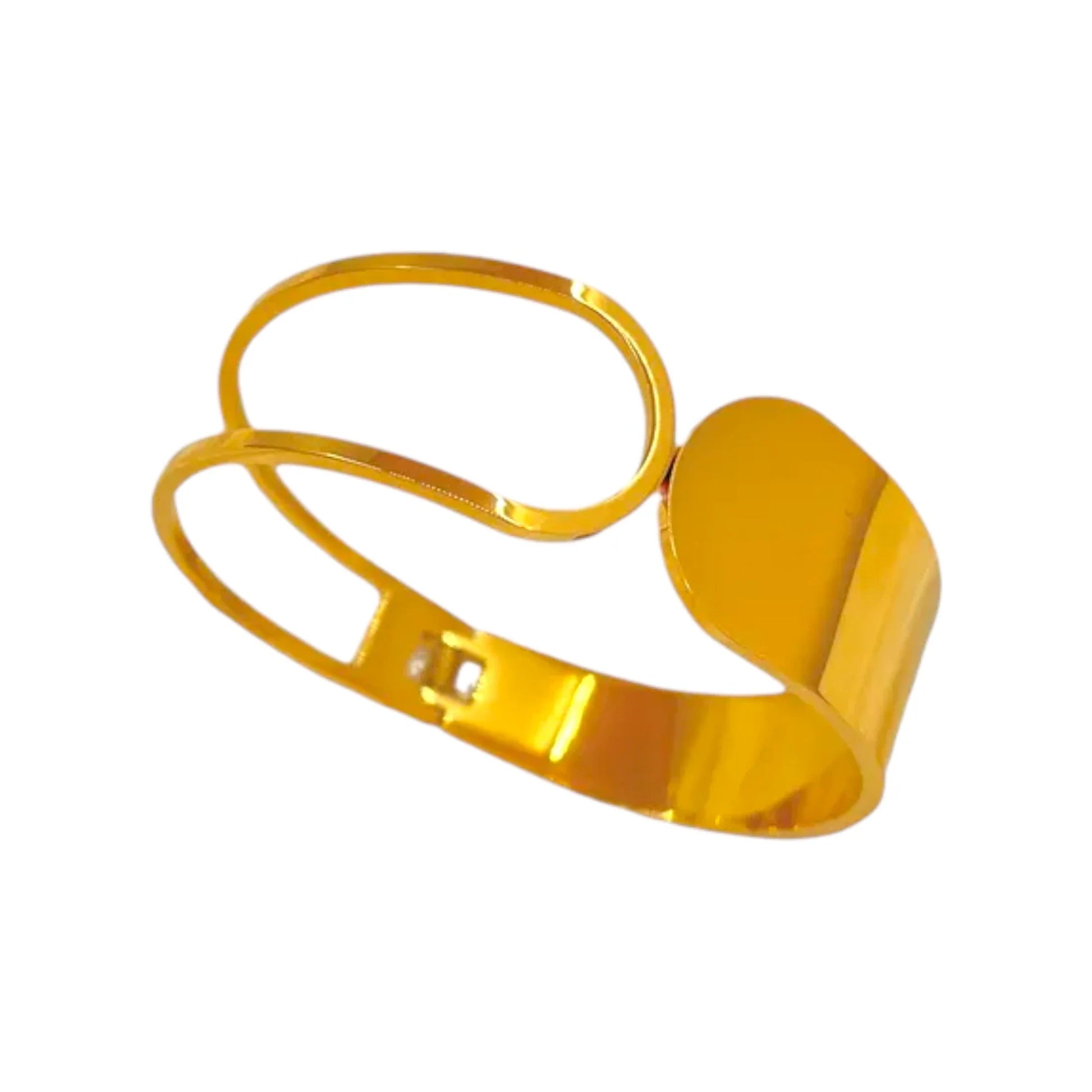 💛 Ατσάλινο Χρυσό Βραχιόλι Cuff με Αφηρημένο Σχέδιο