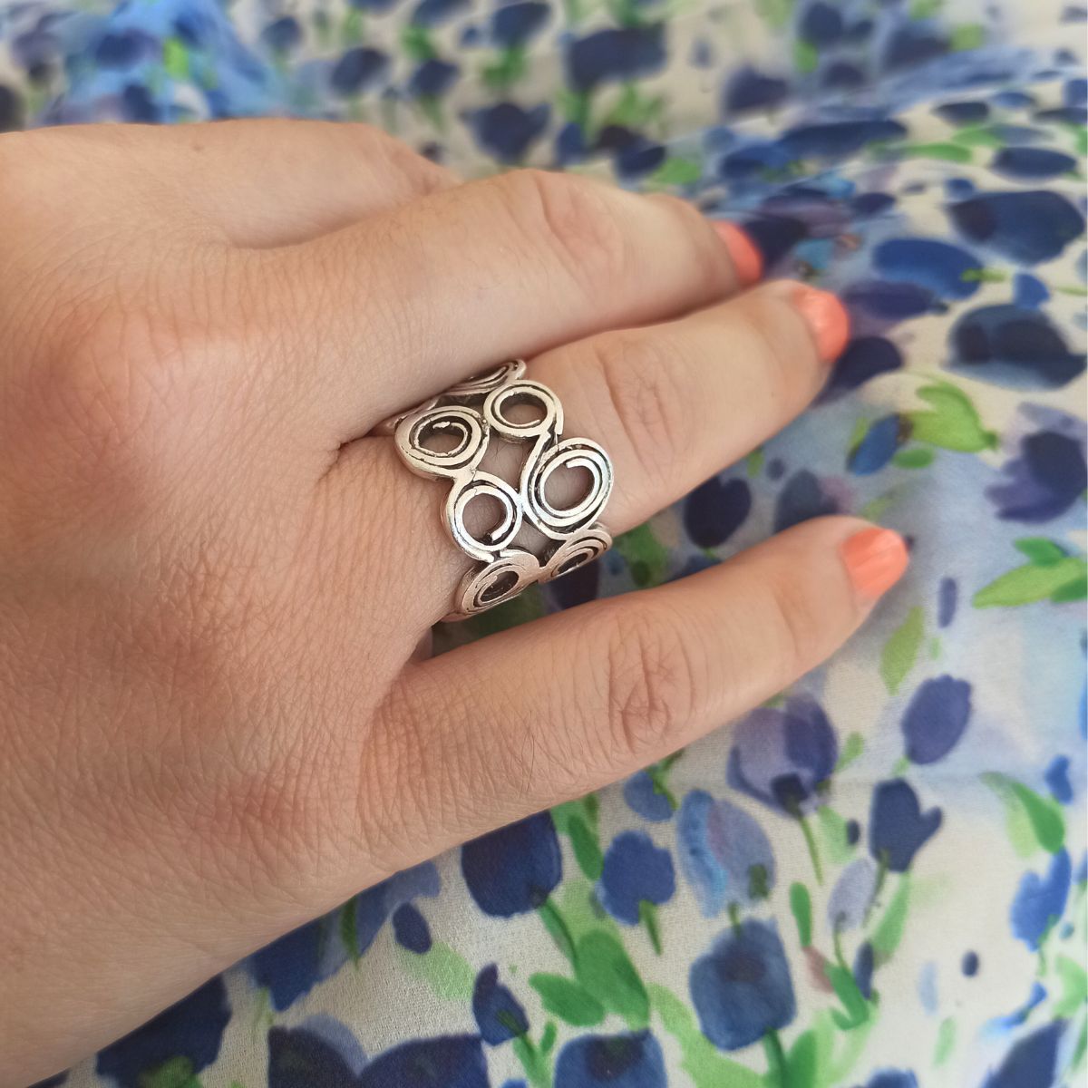 Δαχτυλίδι από ζάμακ με γεωμετρικά σχέδια ρυθμιζόμενο