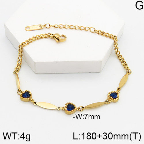 Επιχρυσωμένο Ατσάλινο Βραχιόλι με Καρδιές και Μπλε Πέτρες (B3373)