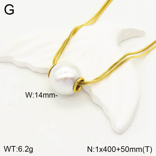 Επιχρυσωμένο Ατσάλινο Διπλό Κολιέ με Πέρλα (N3282)