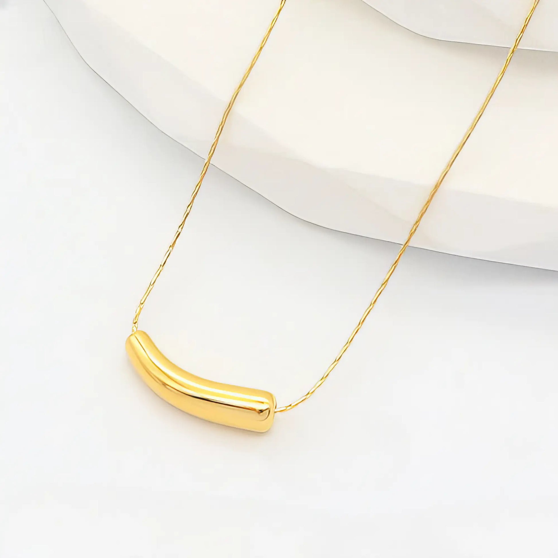 Μίνιμαλ Ατσάλινο Κολιέ Χρυσό με Καμπυλωτό Μοτίφ – Elegant Simplicity