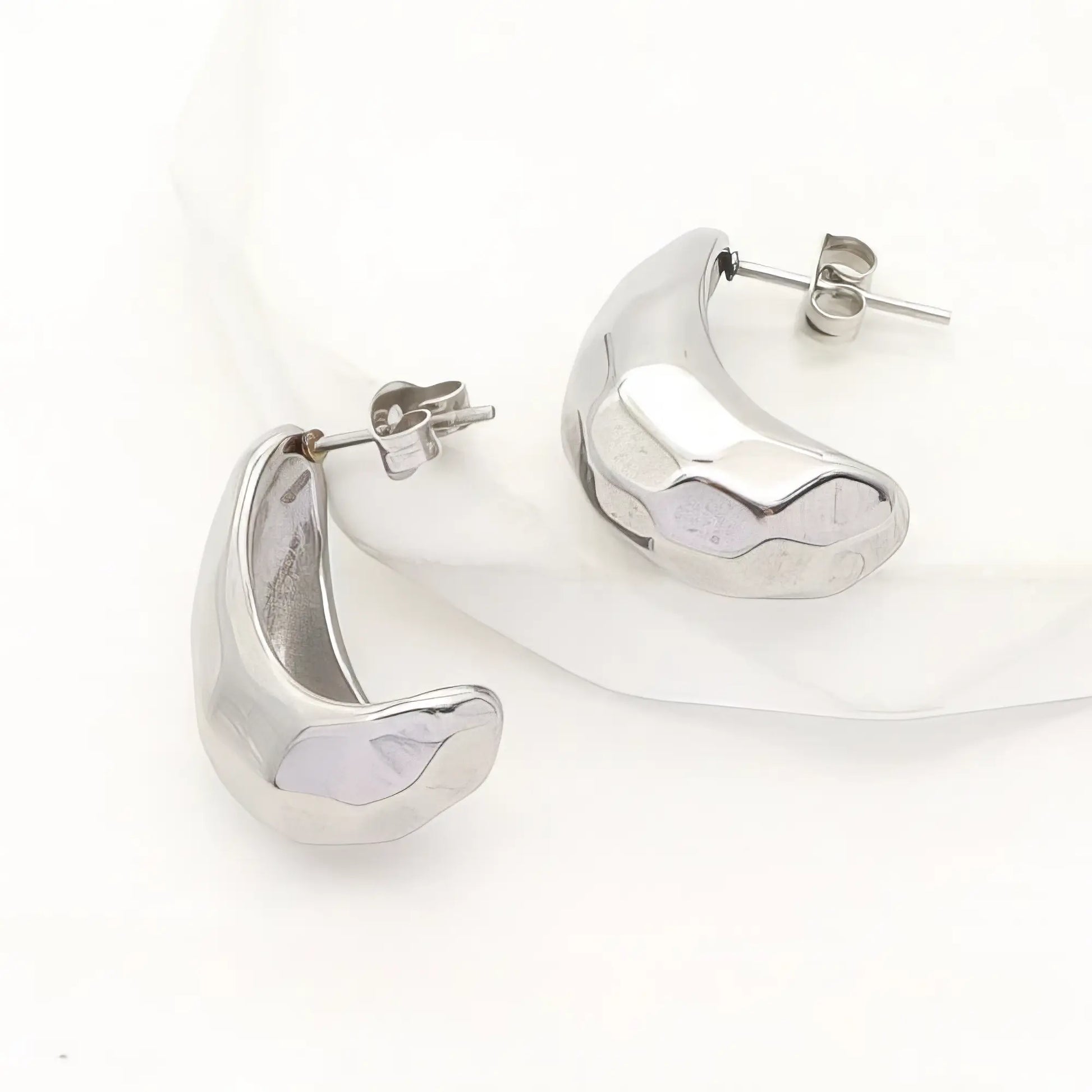Chunky κρίκοι σε ασημί τόνο με μοναδική γεωμετρική υφή που χαρίζουν μοντέρνο χαρακτήρα. Must-have για urban chic εμφανίσεις.