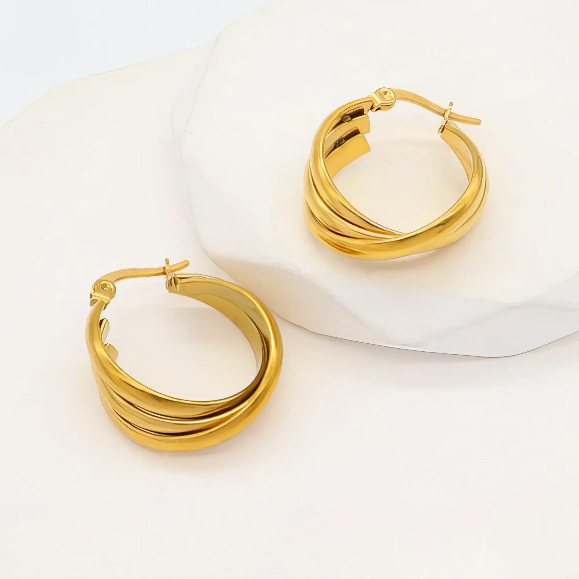 Σκουλαρίκια από ανοξείδωτο ατσάλι σε σχέδιο τριπλού κρίκου – 2,3 cm