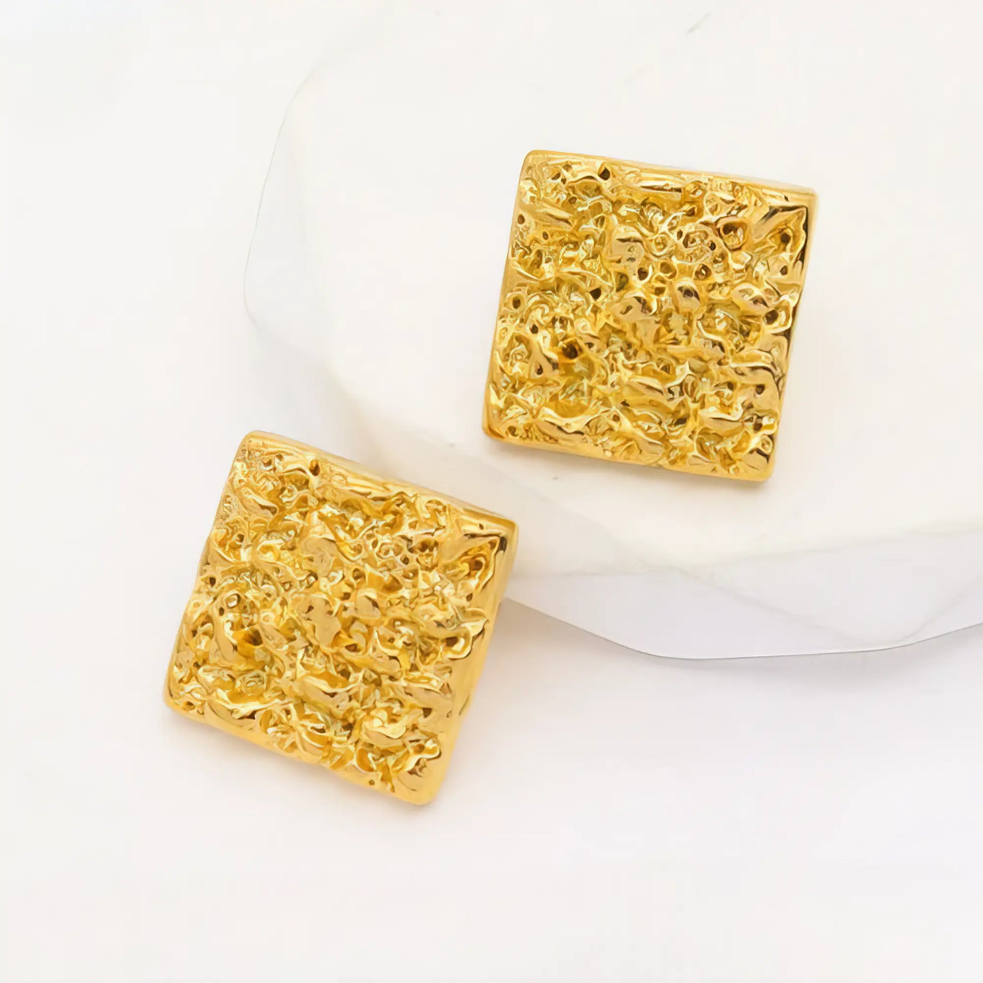 ✨ Μοντέρνα σκουλαρίκια με τετραγωνισμένο σχήμα και πλούσια ανάγλυφη λεπτομέρεια.