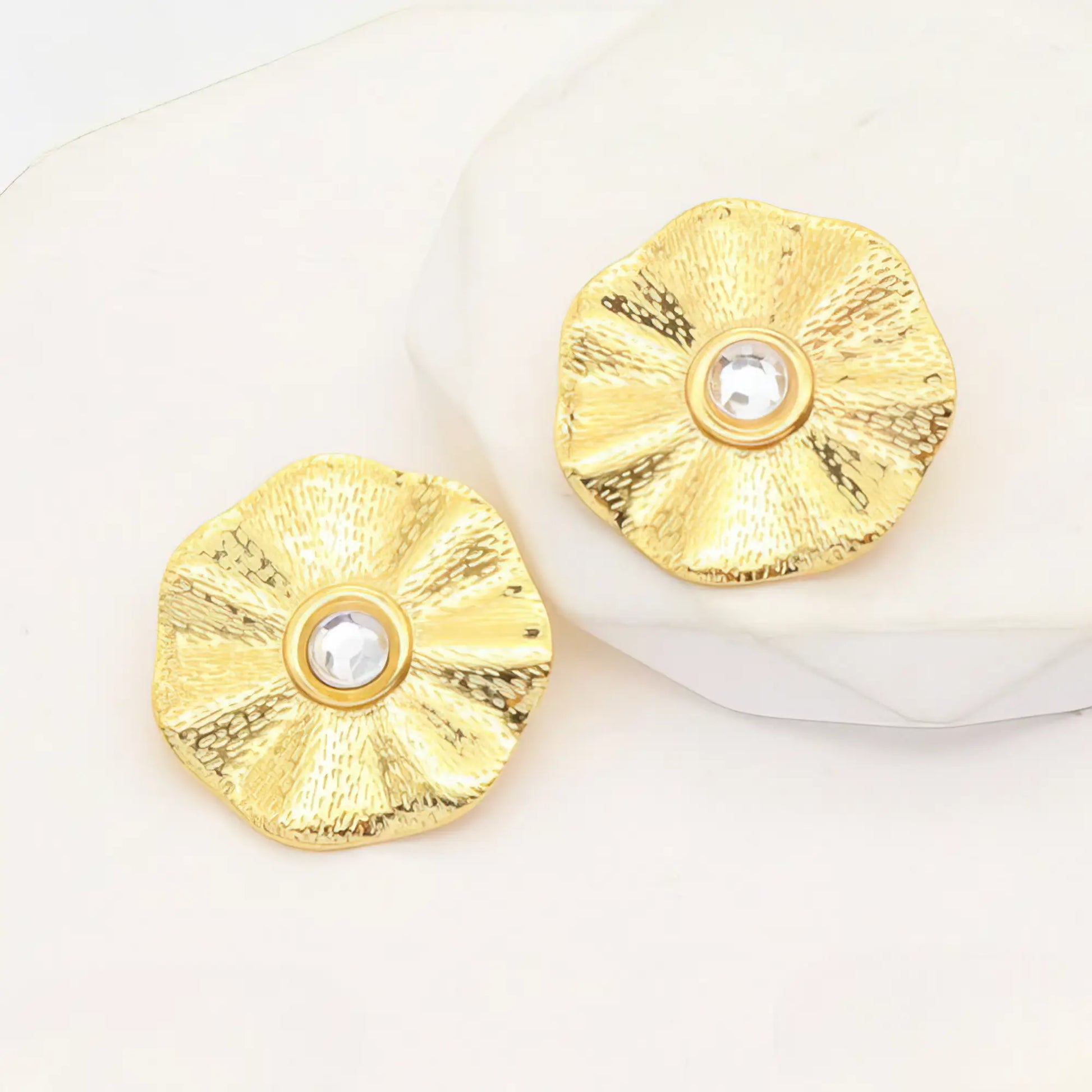 Σκουλαρίκια από ανοξείδωτο ατσάλι σε χρυσό με λευκή πέτρα – 2.7cm – 9.1g