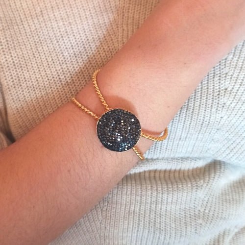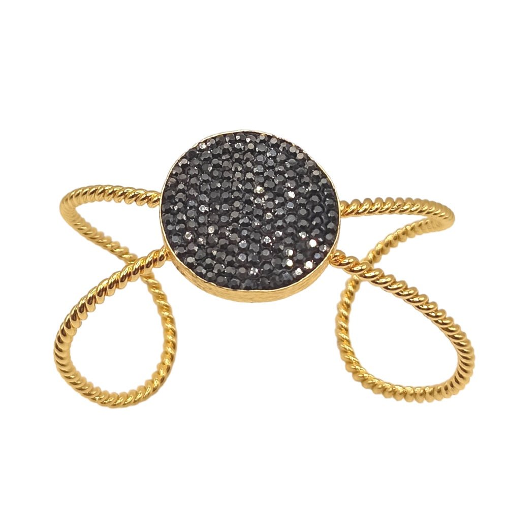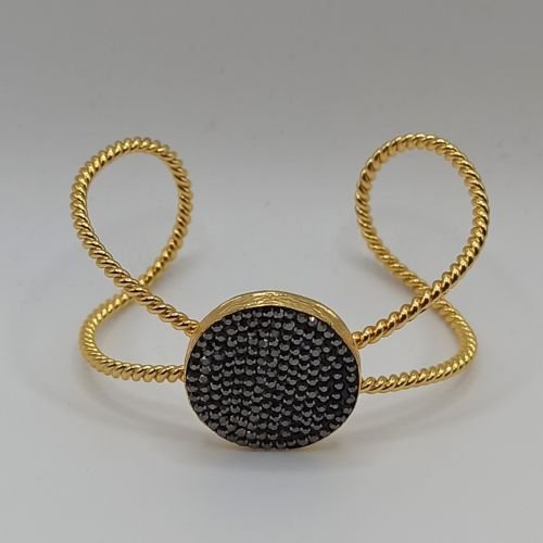 Γυναικείο βραχιόλι από ορείχαλκο με γκρι ζιργκόν επιχρυσωμένο